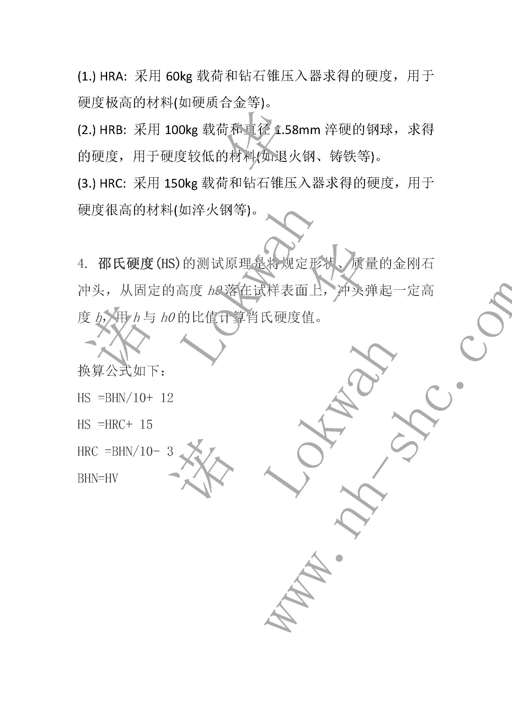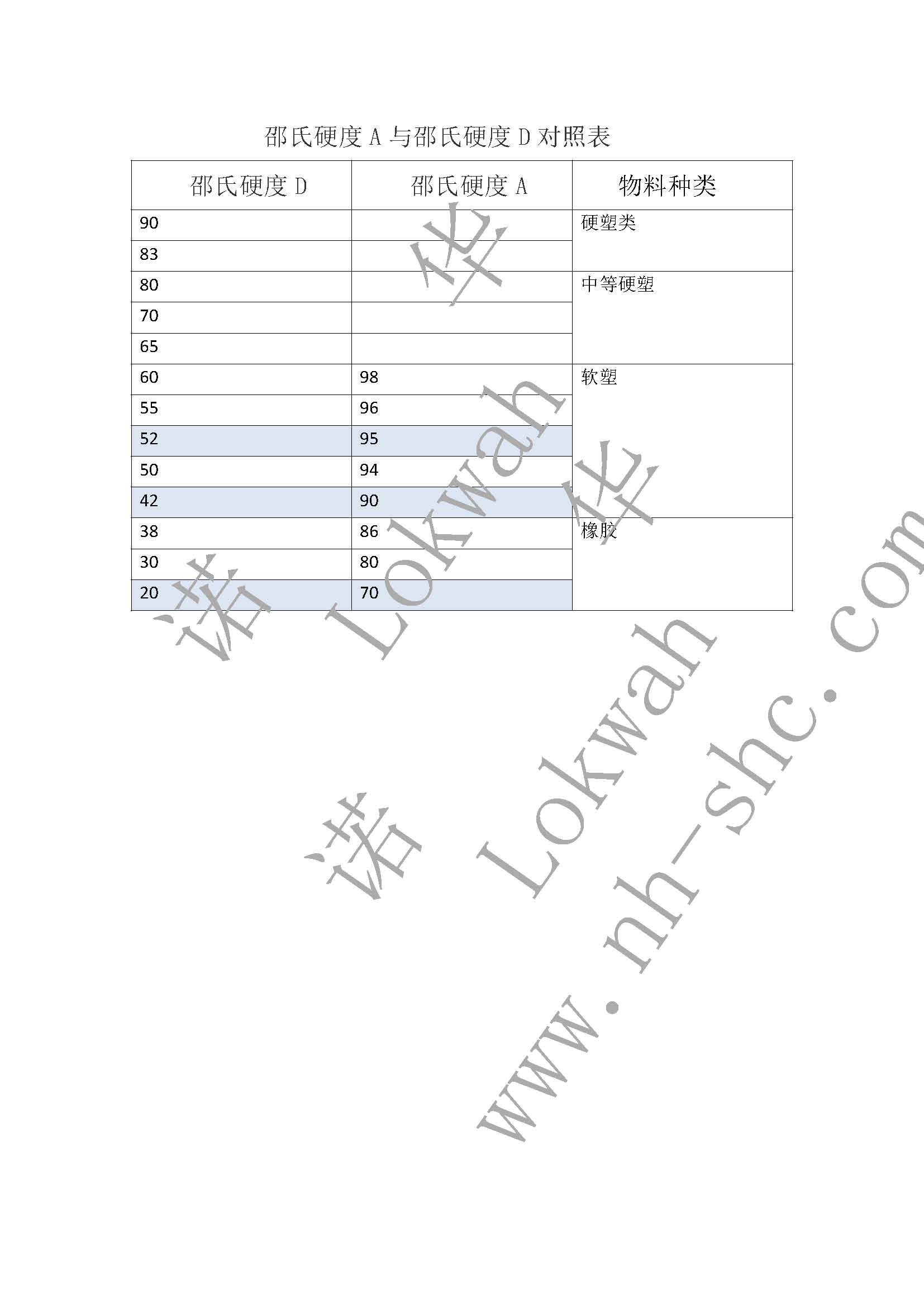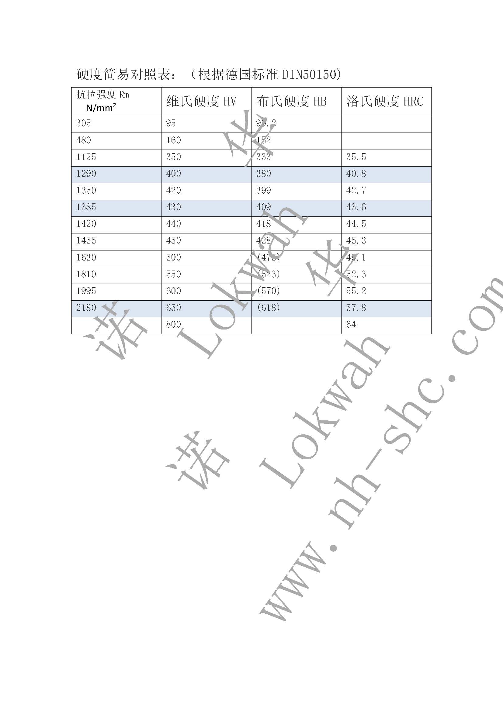 材料硬度指标及对照表